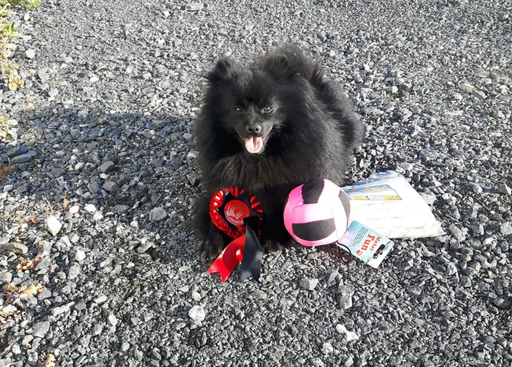 Mittelspitz narttu, musta synt. 29.8.2013 Näyttelyistä: 1 x ROP, 1 x VSP, 1 x PN2, 3 x SERT, 2 x VSP-pentu Silmät: ok (12.12.2014) Polvet: 0/0 Suorittanut Suomen Kennelliiton Kaverikoiratestauksen